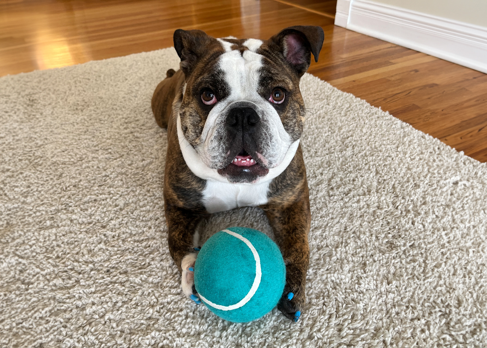 Mable, an English Bulldog, is the newest member of the team.  She has an innate sense of when it's time to take a play break.